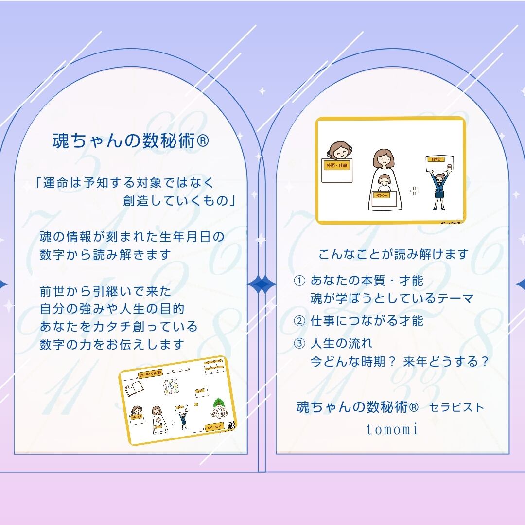 魂ちゃんの数秘術®で 読み解き あなたの「見取り図」 を作成いたします